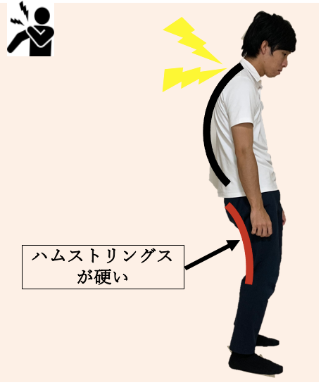 ハムストリングスが硬くなる→骨盤帯後継(いわゆる骨盤がねる)する→背中は丸くなる