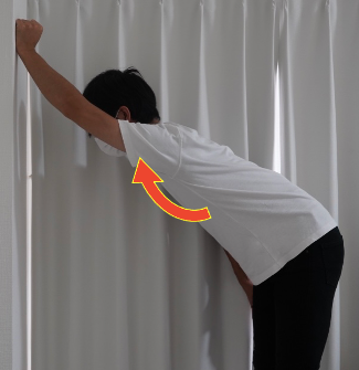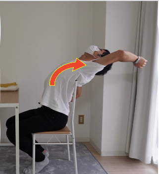 下の写真のように胸元を伸ばす動作が必要となります。